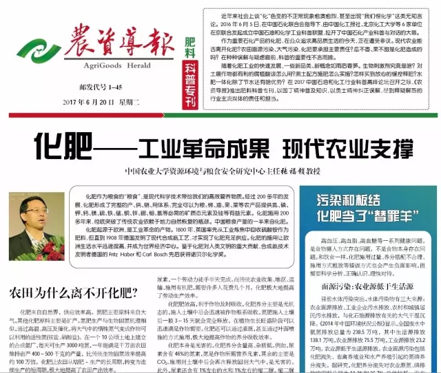 China Agricultural University Resources, Environment and Food Security Research Center Director Professor Zhang Fu lock entitled "Fertilizer - industrial revolution results of modern agriculture support" heavy article, elaborated why the farmland is inseparable from the fertilizer? Eat, eat, health, fertilizer ye keep? At the same time, it clarified the air pollution: nitrogen fertilizer is not the biggest contributor; soil compaction: unreasonable farming caused; low quality of agricultural products: unreasonable fertilization affect the view.