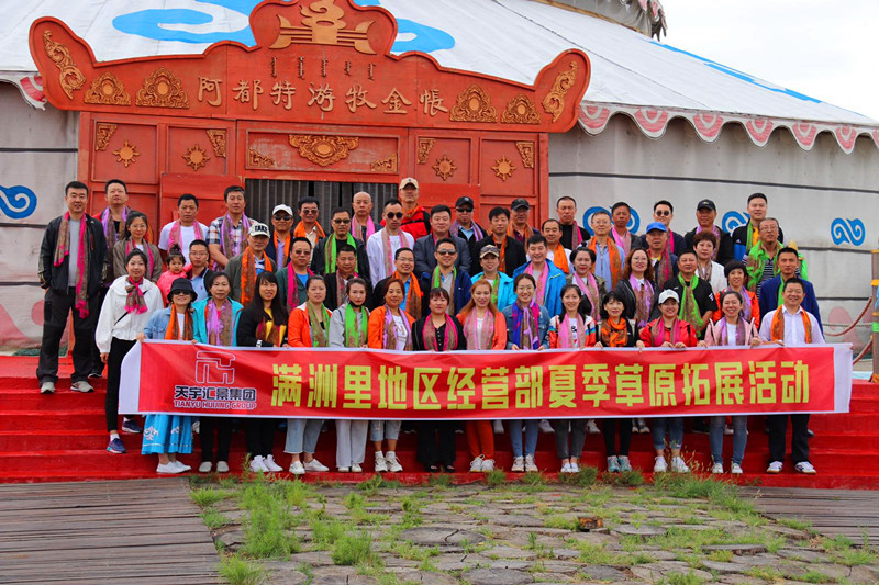 天宇汇景集团满洲里地区于7月6日组织了夏季草原拓展团建活动。满洲里地区全体员工参加了本次活动。并特邀了内蒙古天誉货运物流有限公司有着密切合作的部分公司代表和领导一同参加了本次活动。