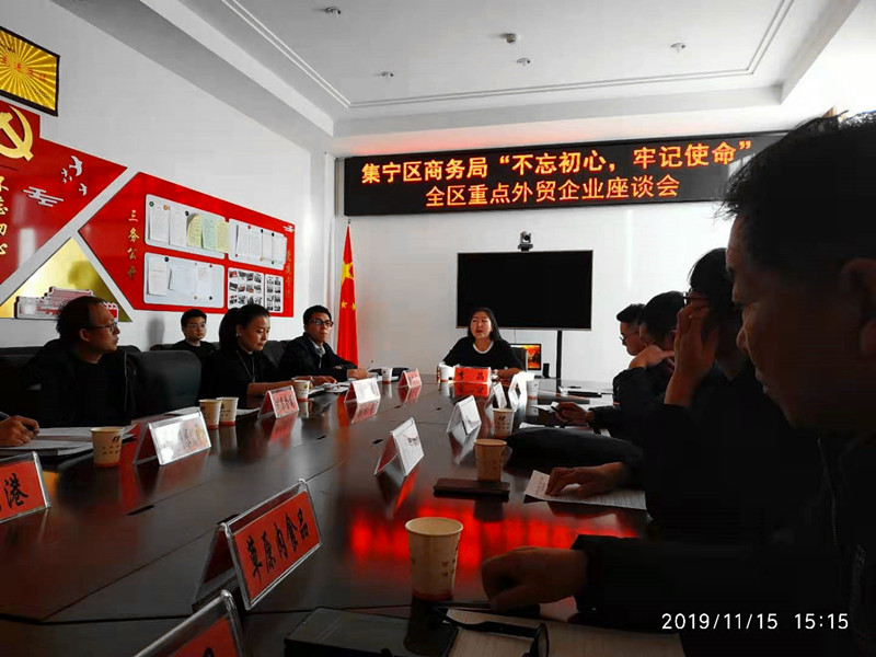 2019年11月15日集宁区商务局组织召开了以“不忘初心 牢记使命”为主题的全区重点外贸企业座谈会,内蒙古亚麻花粮油有限公司代表参加了此次会议。会上集宁区商务局领导通报了目前全区外贸进出口运行情况,听取了各外贸企业工作开展现状和下一步工作措施及政策建议,企业代表就自身经营发展状况、在扩大进出口中面临的主要困难及应对措施、对今后进出口形势的判断和对全区外贸进出口工作的意见建议等方面进行了交流。集宁区商务局领导在会上特别强调,下一步区商务局将进一步加强调度服务,深入了解外贸企业经营现状,及时掌握企业面临的困难,准确研判外贸形势,因企施策推动外贸稳增长,这一举措受到了参会企业的热烈欢迎,相信在集宁区商务局的高度重视和关注下,我区的外贸业务量一定会稳步提升。
