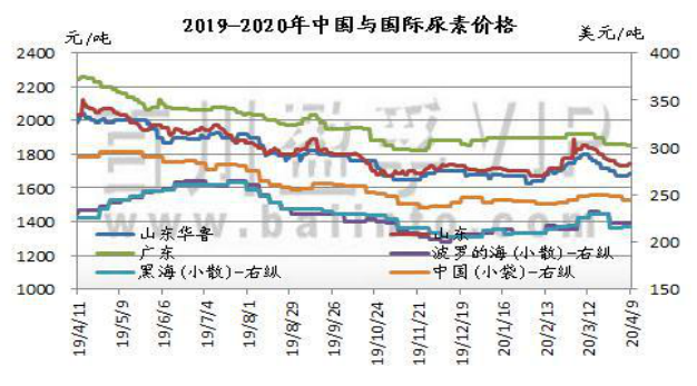 本周国内尿素市场行情涨跌互现,山东及两河出厂报价在1690-1740元/吨,成交1660-1700元/吨。清明节期间,局部地区价格延续节前疲软走势小幅走低,多数企业止跌企稳。周内价格涨跌不一,内蒙及四川等地价格继续下探,出货一般,而河南、山东及山西等地节后市场成交转好,市场农业备肥有所增多,下游复合肥厂及经销商备货热情有所提升,企业报价小幅调涨;两广需求较差,板材开工低位,价格弱稳。