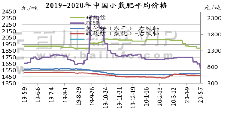 硝酸: 本周国内浓硝市场行情弱势下滑,五一小长假结束后,多厂报价下调,幅度30-100元/吨左右。