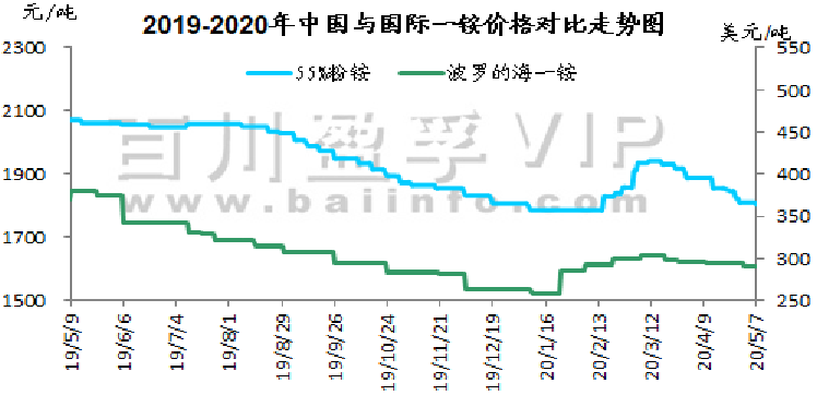本周氯化钾市场弱势观望运行,2020年4月30日,2020年钾肥进口合同达成,价格为CFR 220美元/吨,较2018年下降70美元/吨。目前港口可售现货较少,但保税区货源充足,近期将开始陆续过货,市场看空心态较浓,同时市场淡季,需求支撑不足,目前实际成交较少,观望气氛持续,近期价格或仍有走低可能。