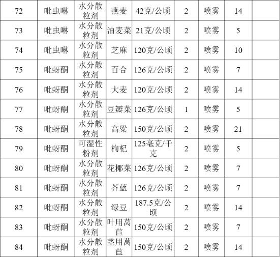 附件:特色小宗作物农药残留风险控制技术指标(表格部分内容)