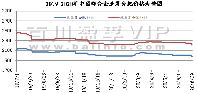 本月国内尿素价格走势呈倒“v”型,上半月上涨,下半月开跌,月末价格较月初价格有20-50元下行。从5月下半月开始,国内尿素检修厂家增多,供应量急剧下行,为尿素价格续涨提供有利条件。其二上半月内需良好,东北及华东局部地区农需追肥备肥持续进行中,接单火爆;新疆地区农需增加,下游接货积极,成交尚可,主产区的库存压力均有所缓解。但郑州局通知,自2020年6月5号18点以后,铁路大票从之前运费优惠的30%,调整为优惠10%,导致山西及河南各厂火运成本有所增加,火运接单积极性减弱。下半月,随着夏季肥需求基本接近收尾,复合肥生产进入淡季,工业需求下滑明显,且市场供应量回升,价格开始走低,且跌速大于上半月涨速。端午节前印标价格明朗,由于内外价差较大,中国出口热情不高,但业内多认为价格下行空间已不大,因此节后贸易商拿货量增加,给月底行情带来复苏迹象。