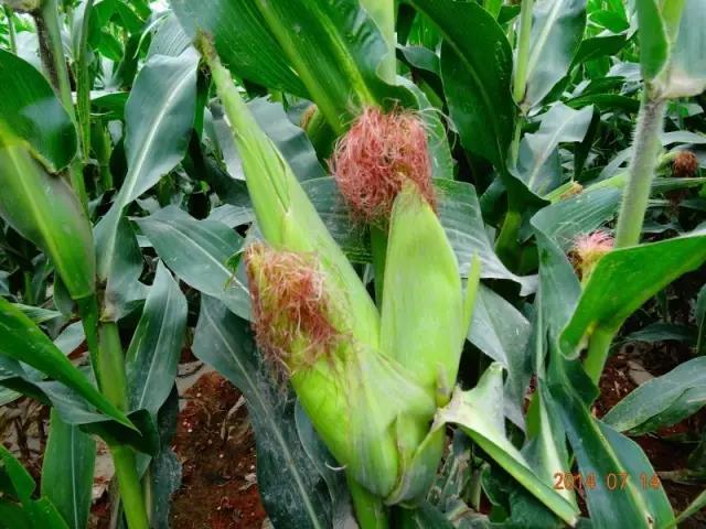 2、干旱缺水,雄穗抽不出或抽时过长,雌雄不同期,难以相遇受精,造成玉米多穗。玉米喇叭口至抽雄期是需水临界期,如果缺水造成卡脖旱,雄穗出不来或出来时间过长,雌蕊花粉丝已死,“雌雄难遇”即使抗旱浇水,能够抽天英,由于高温雌穗发育落后,不能及时吐丝,雄穗散粉结束后,雌穗才开始吐丝,田间没有花粉,不能受精,花期不遇,营养下移,刺激下部腋芽生长,形成一株多棒。