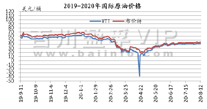 本周周内美国经济数据利好且EIA库存连续下降提振市场,国际原油价格小幅上涨。原油价格震荡上涨。其中WTI期货本周均价41.88美元/桶,较上周上涨2.1%,较上月上涨2.74%;本周布伦特期货均价44.88美元/桶,较上周上涨2.01%,较上月上涨3.84%。综合来看,在疫情未得到有效控制的背景下,市场供需难有大的改观,预计下周油价仍将在区间内震荡。