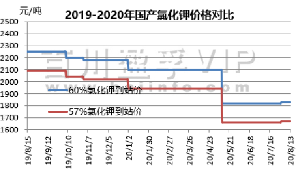 本周(2020.8.6-2020.8.13)氯化钾市场盘整观望运行,市场交投稳定,近期港口少量到船,部分货源现货较为紧俏。国储项目对市场库存压力有一定缓解。