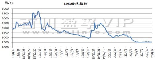 价格指数从8月20日的2535元/吨,上涨至当前2547元/吨,上涨12元/吨,本周液化天然气价格稳中小幅上行,总体价格波动幅度在20-130元/吨之间。辽宁、华北、山东LNG接收站价格推涨,利好周边市场。截止目前价格有一定上下调动,调价幅度对下游接货已经造成一定的影响。国内LNG市场下游需求较为平淡,市场观望氛围较为浓厚,整体趋于稳定,局部地区根据自身环境小幅调整价格。