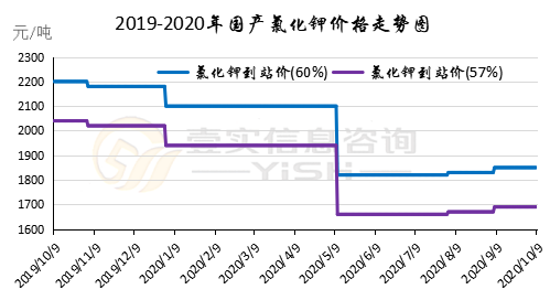 2020.9.24-2020.10.9氯化钾市场挺价观望,国庆假期结束后,大型进口商价格上调,进口钾价格上行,贸易商手中前期低价货源较少,市场挺价看涨气氛持续。