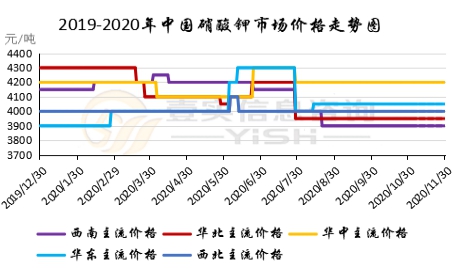 11月硝酸钾市场淡稳运行,现处于农需淡季,硝酸钾国内市场需求不大,主流企业报价暂稳。