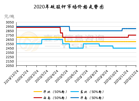 国际市场方面:随着中国对硫酸钾的需求和价格的增长以及台湾供应商的提价,东亚硫酸钾挺价看涨。曼海姆硫酸钾50%粉主流出厂价2550-2650元/吨左右,52%粉出厂价2650-2750元/吨左右,优惠幅度在50-100元/吨。东北地区50%粉主流出厂报价2500元/吨;华南地区价格相对较高,50%粉主流出厂报价2950元/吨。青海水盐体系硫酸钾供应较为紧俏,价格维持高位,主流到站报价2500元/吨左右,实际成交可谈。国投罗钾公司硫酸钾装置正常生产,罗钾52%粉末硫酸钾现汇价格2750元/吨。
