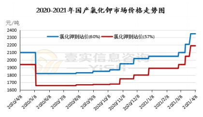 氯化钾市场维持坚挺,市场需求淡季,新单成交较少。4 月 5 日,ICL与印度 IPL 达成钾肥合同协议,到21 年底供应 60 万吨钾肥,有 5 万吨可选量,价格为 280 美元/吨 CFR,白俄罗斯钾肥公司也再次和 IPL 达成合同协议,价格为 280 美元/吨CFR,较年初价格上涨 33 美元/吨。