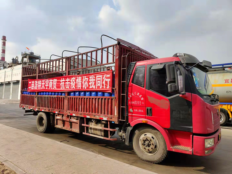当前国内新冠肺炎疫情呈本土零星散发和局部聚集性疫情交织叠加态势,2021年10月13日二连浩特市突然出现一例确诊病例,二连地区立即进入了紧急状态,作为一家从二连浩特起家的企业,天宇公司时刻关注疫情情况,为缓解二连浩特市抗议一线疫情防控物资之急,助力做好二连浩特市疫情防控工作,我集团旗下二连浩特市天宇商贸有限责任公司携手内蒙古瑞达化工集团有限公司向二连浩特市红十字会捐赠疫情防护物资10吨次氯酸钠消毒液,于10月27日装车,10月30日送到二连浩特市红十字。