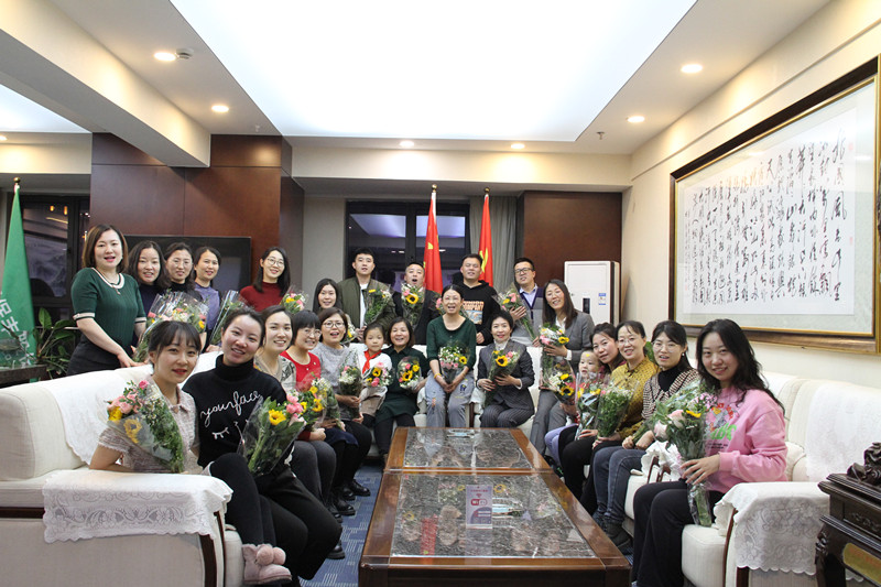 蛋糕与鲜花承载着公司对每一位员工的祝福关怀。礼物虽轻,但大家的快乐都洋溢在眉梢。