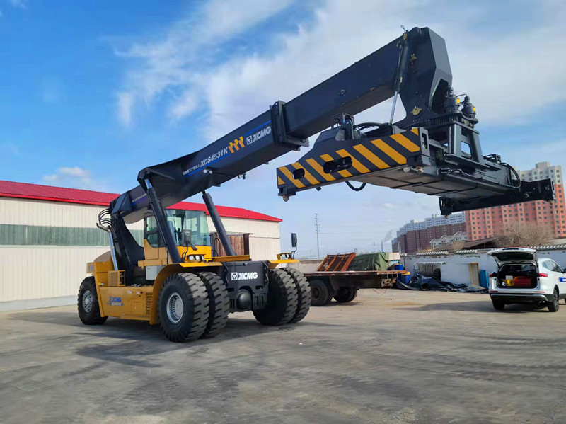 3月29日,一辆超长、超宽特殊拖车缓缓开入天宇汇景集宁园区,天宇汇景集团购买的徐工XCS4531K正面吊正式登场,这位“新伙伴”长11米,高度5米,宽6米,整车质量达71吨,额定承载可达45吨,可起吊20、40英尺型号集装箱。