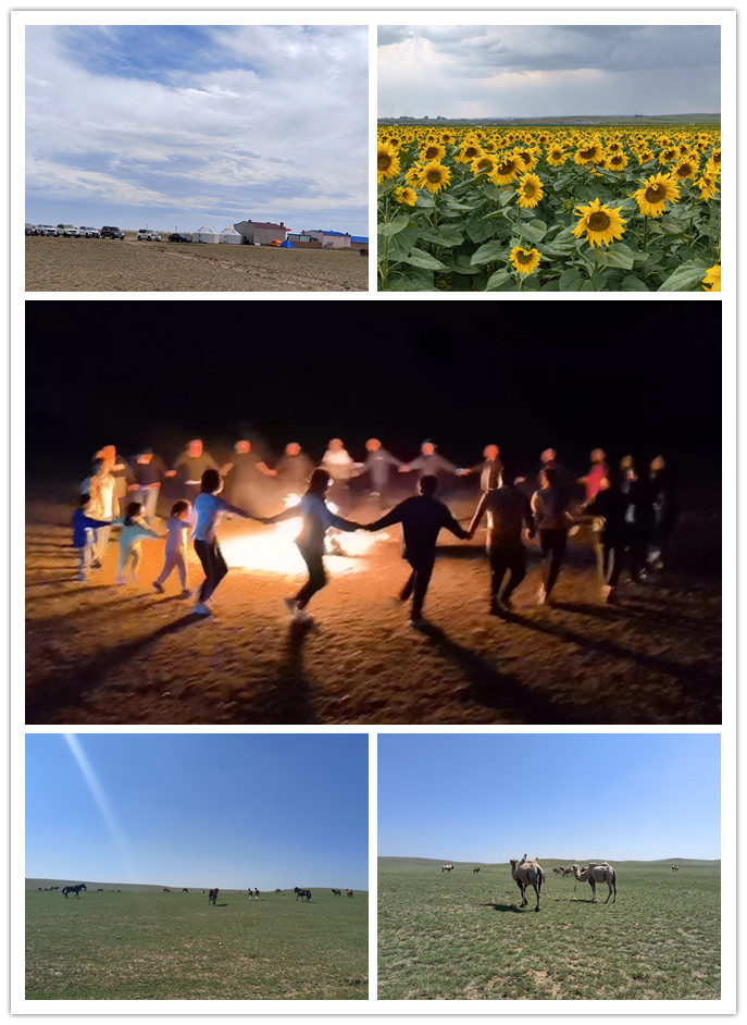 历经五个小时的路程,户外团建之旅来到四子王旗脑木更苏木红山额吉牧场。草原上一望无际的美景、清新的空气与美味的手把肉洗涤了长途的疲惫。大家在大草原上呐喊奔跑,在蒙古包里欢歌笑语,广阔的天地仿佛可以包容一切,让人尽情释放压力;美丽的风景又能将心灵平静,像母亲的手抚慰着城市中躁动的心。大家齐聚草坪,点燃象征希望之光的熊熊篝火,欢乐、友爱、祝福都随着火苗升腾,飘荡在草原上空。