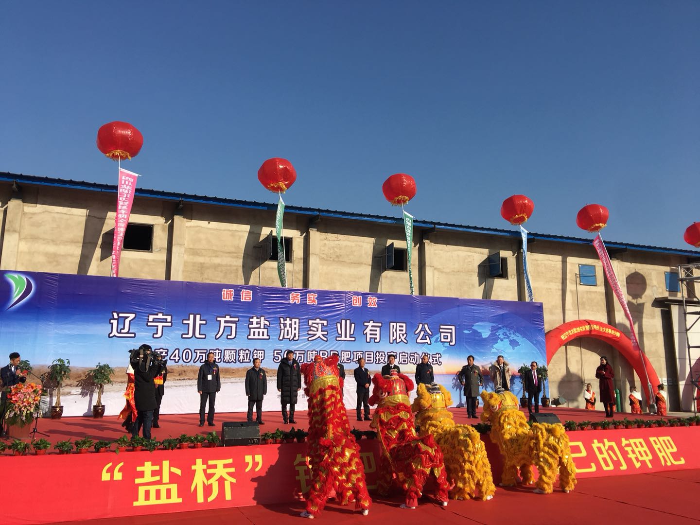 辽宁北方盐湖实业有限公司40万吨/年颗粒钾肥、50万吨/年BB肥项目于2017年11月24日上午在项目所在地辽宁营口市鲅鱼圈区举行了隆重的投产启动仪式。当日来自全国各地的200多家行业界的企业代表400多人受邀参加了仪式。辽宁营口开发区党工委书记、鲅鱼圈区位书记方景广先生、青海盐湖工业股份有限公司董事长王兴富先生;辽宁营口鲅鱼圈区区委副书记、开发区管委会主任、鲅鱼圈政府区长李宏振先生、俄罗斯乌拉尔钾肥北京分公司的总经理司元功先生及项目股东方代表和项目负责人共同为项目剪彩。