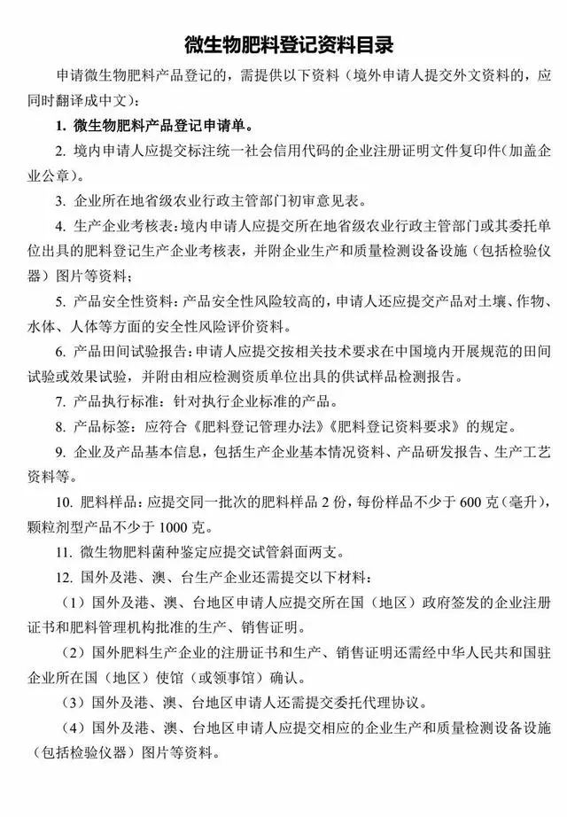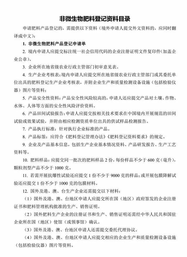 二、肥料登记所需材料