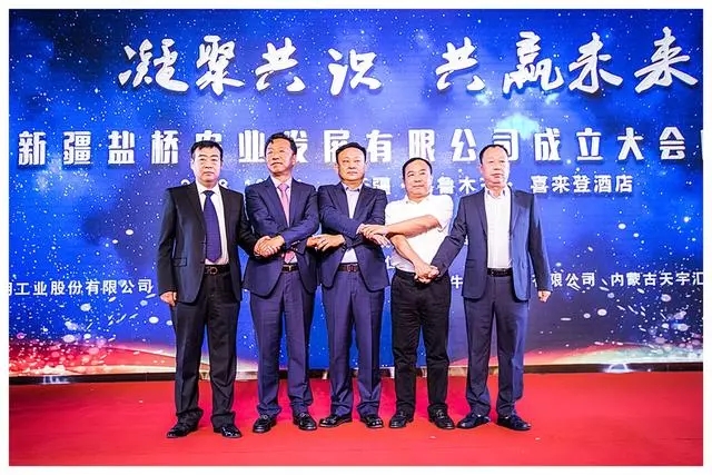 新疆盐桥农业发展有限公司由青海盐湖工业股份有限公司、新疆金牛粮桥农资有限公司共同发起成立。公司以青海盐湖工业股份有限公司“盐桥”牌氯化钾肥和新疆金牛粮桥农资有限公司成熟的水溶肥生产技术、健全的全疆市场营销渠道、专业的农化服务及充足的淡储等资源。在库尔勒建设水溶肥生产基地及以磷钾肥为主的仓储物流配送中心。会上,股东方代表、战略合作伙伴、经销商等各位嘉宾就公司成立进行了精彩致辞。